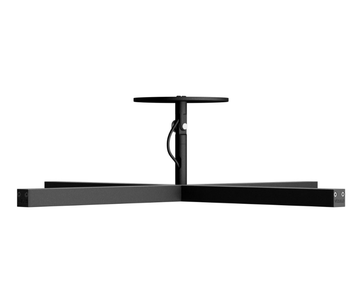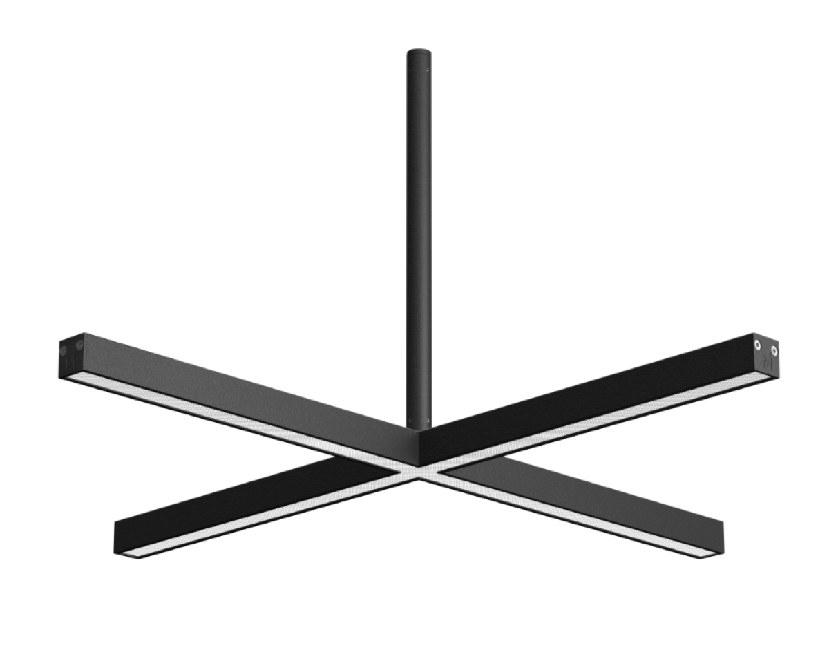 The two lines that form the X bisect and cross each other in a 90° angle. Depending on the direction the light object is turned and fixed on the ceiling, its meaning is changed from orthogonal clarity to a denial of conventional practices.